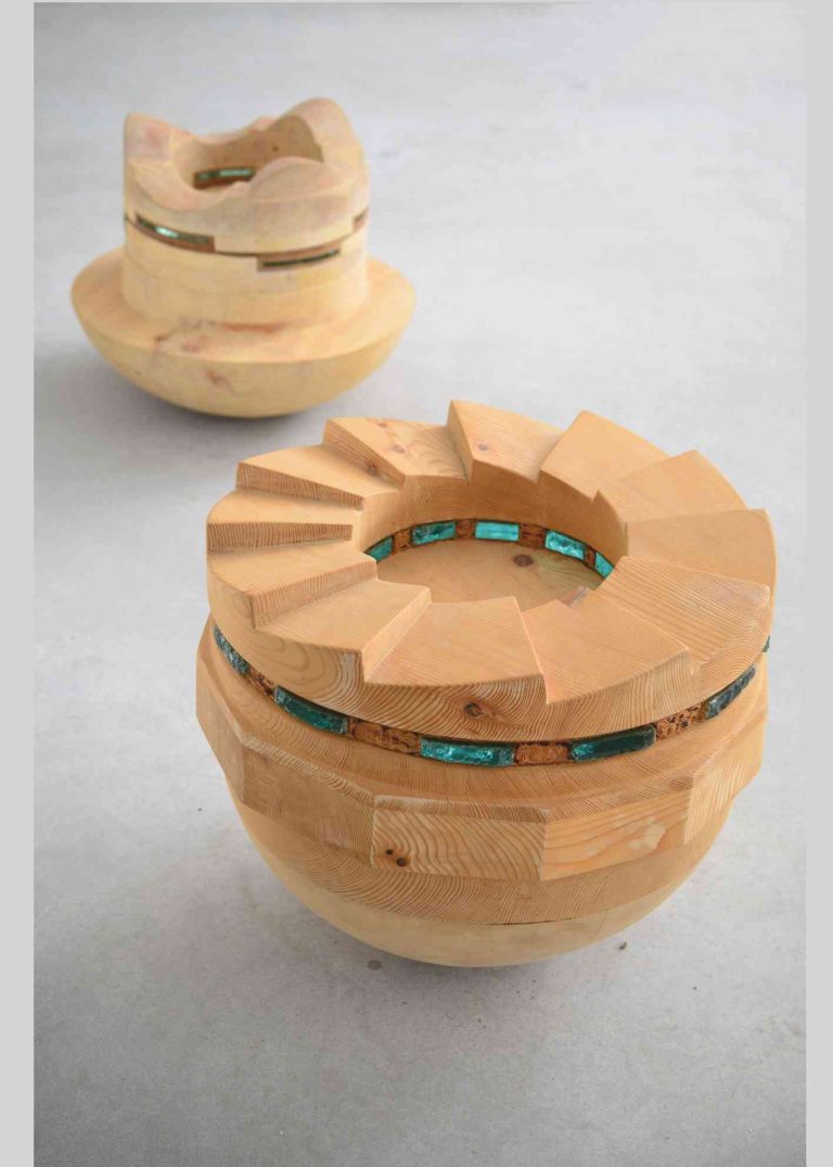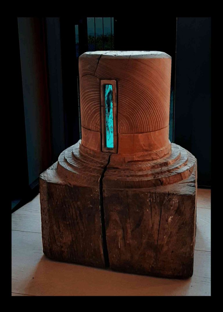 Linde und Eiche sind meine bevorzugten Hölzer für die bildhauerische Arbeit an abstrakten Skulpturen, in die ich das Glas einfüge.